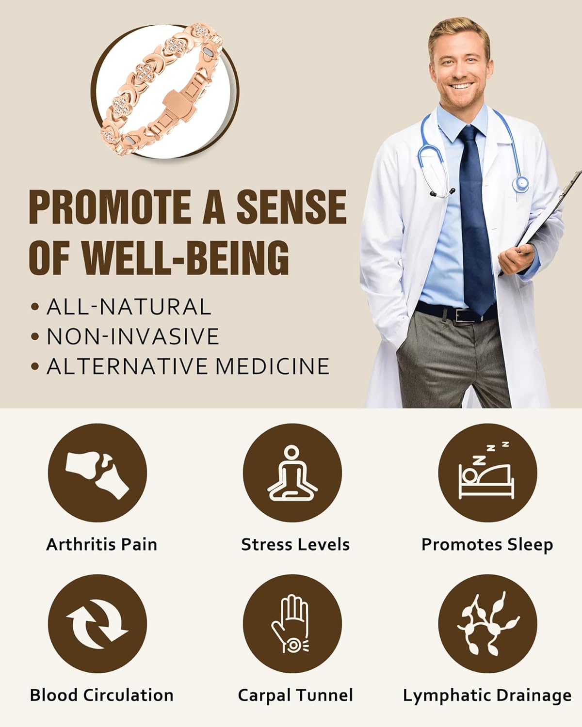 elements—delivering a comfortable, adjustable bracelet that complements any outfit while providing the benefits of targeted magnetic exposure. Lightweight copper construction resists tarnish and pairs beautifully with gold or rose finishes.